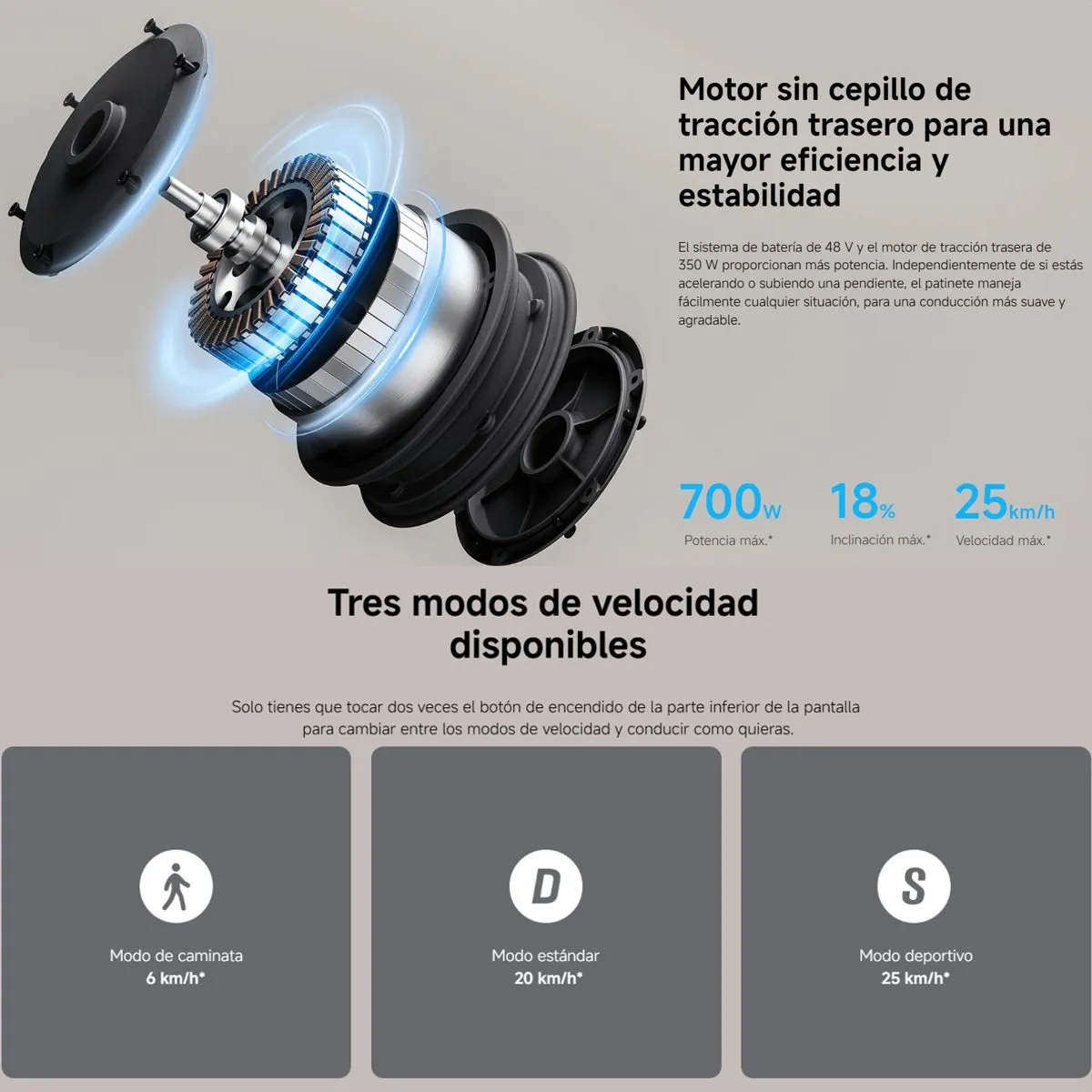 Tres modos de velocidad disponibles