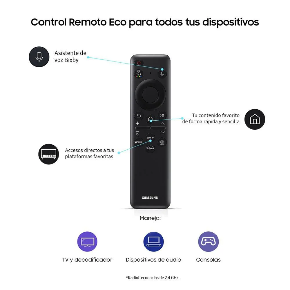 Samsung Daily+A través del ecosistema de aplicaciones abiertas del sistema operativo Tizen de Samsung, Daily+ te permite administrar fácilmente tus actividades diarias y tu estilo de vida desde la comodidad de tu TV. Daily+ incluye aplicaciones y servicios como SmartThings y Workspace.* Samsung no es responsable de ningún servicio de terceros y no es responsable de ningún daño o pérdida causados por cualquier servicio de terceros. * El servicio disponible y la interfaz de usuario están sujetos a cambios sin previo aviso. -